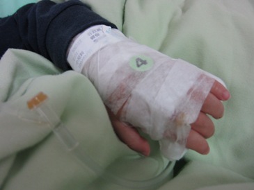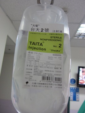 難受著好不容易脫離靜脈營養,卻又小手扎上針頭輸送著營養液