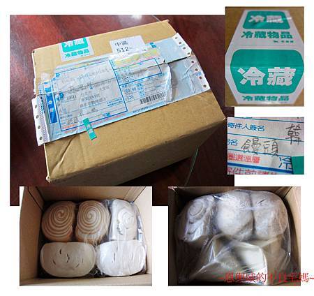 話題有點飄遠了,在拉回來一下!!那天接到包裹的時候,真的好開心,從知道他們掌管饅頭店之後,便一直好想嚐嚐他們家的饅頭(應該說,只要是吃的我都想嚐嚐吧),不過一開始宅配服務還沒有起步,難忍的口腹之慾得等我回北部時,才有機會滿足,但是久久回鄉,這饅頭店實在擠不進安排的行程裡,就算擠進了,也沒有冷藏設備可以把它們帶回家,再怎麼貪吃也只能作罷;之後他們接受訂購,也有了全省的宅配服務了,開始動念想來個大訂購,沒想到熱情的朋友先寄了一箱的饅頭給我,五種口味都有,還各給了我兩顆耶!