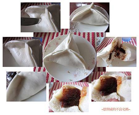 拿個小鍋子、墊上網架、放上冷水,就先蒸了它唄。蒸煮的過程中我還一直猜想這到底是什麼口味啊?(人家老闆明明有給DM,自己心急貪吃不細看!)大約5分鐘,開了蓋,一陣蒸氣過後,我就被它軟綿綿的外皮給吸引了,這饅頭的觸感,還真有點像我們在京都八齋橋吃到的日本麻糬,擺盤後用抹刀試試Q度,赫!居然Q彈有勁,跟我家寶貝的小屁屁一樣Q耶(拍謝啦….我是媽媽咩),切開後才發現是顆豆沙包(都說人家老闆有給你DM了!),不瞞您說(就你,我說的就是你),我當下心涼了一半,因為ㄚ敏討厭豆沙包,每次吃到豆沙包那種外皮無味內餡卻又甜又膩的口感,都會讓阿敏臉部泛起超級不舒服的「雞母皮」,對付豆沙包我通常只有兩種作法,一是丟給老公吃,二是丟給孩子吃。